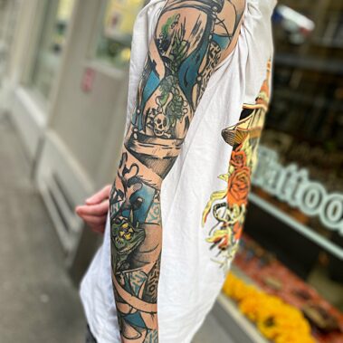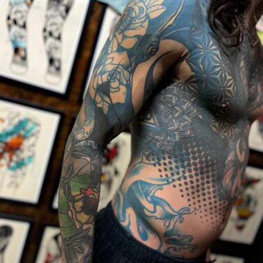 An awarded artist, he is a frequent guest in Tattoo Conventions around the world. He currently resides in Zurich and is a member and owner of Switzerland’s tattoo parlour, The Burning Eye Tattoo.