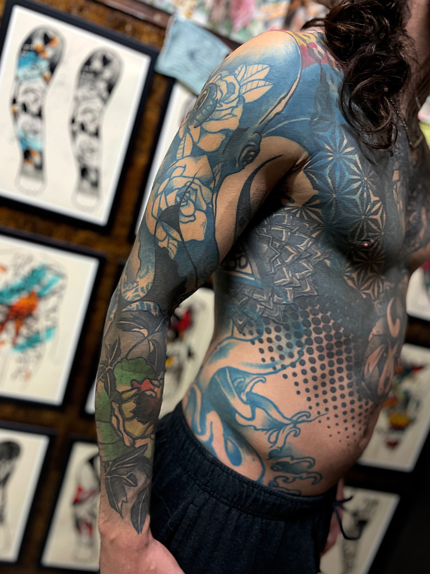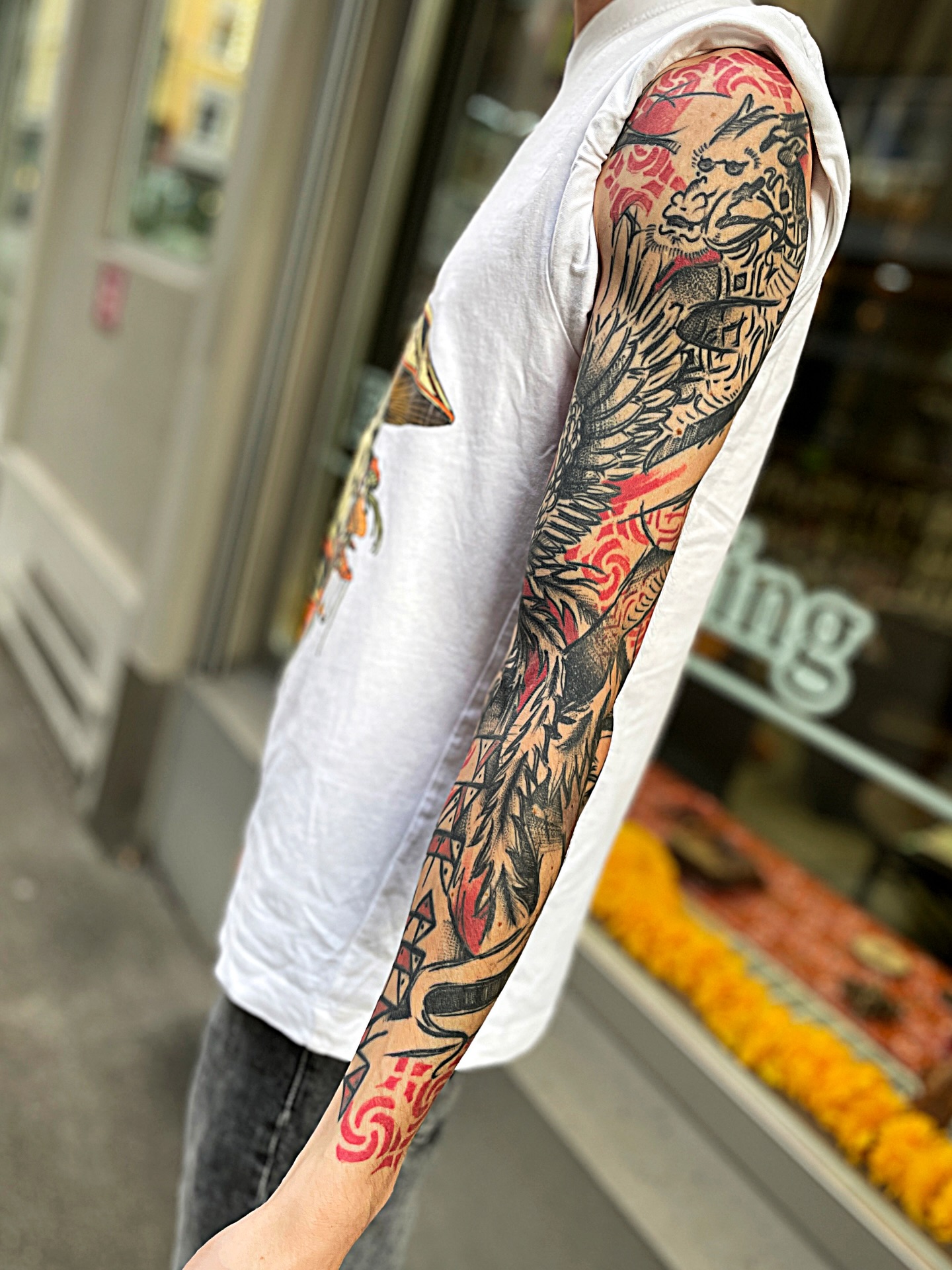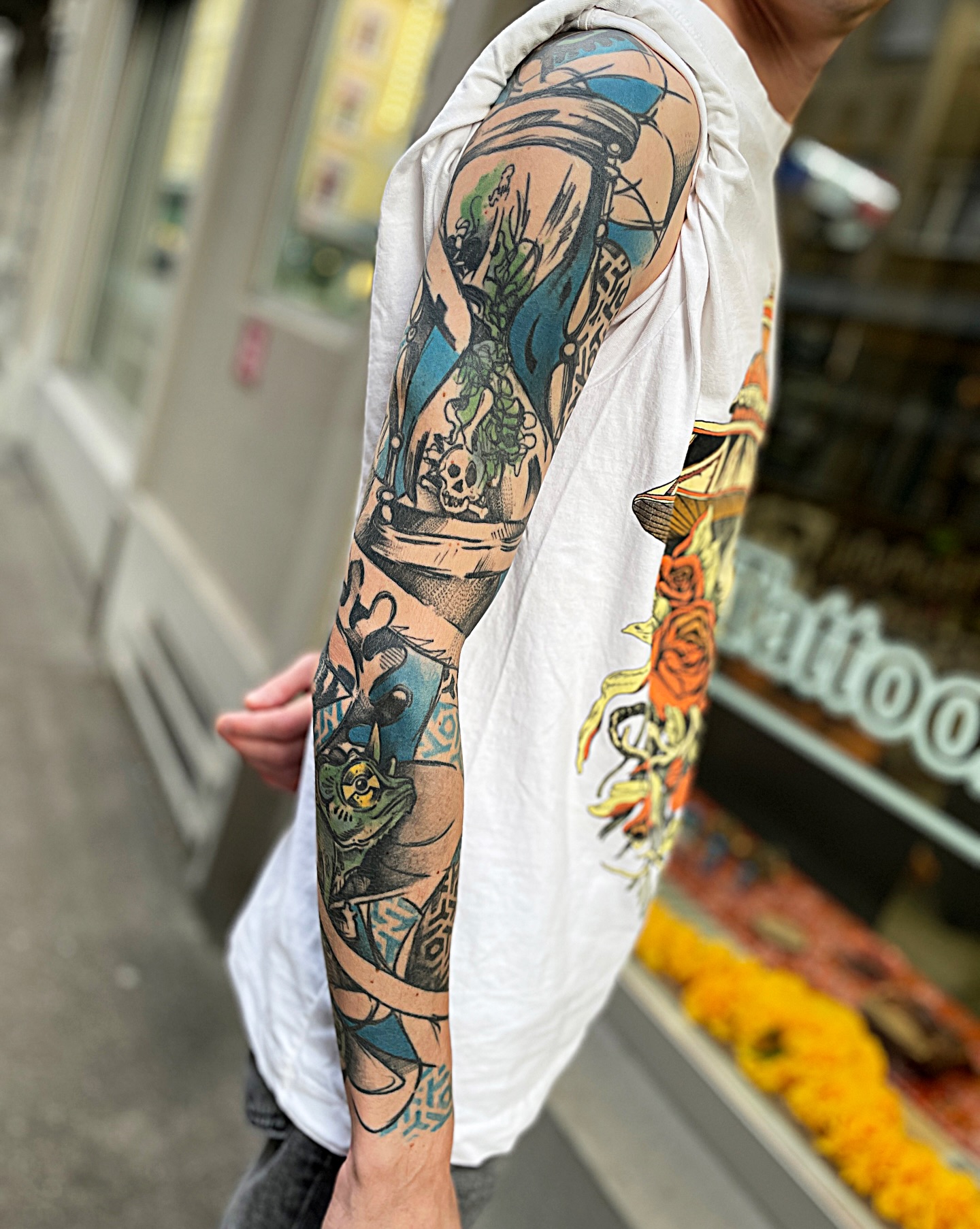 An awarded artist, he is a frequent guest in Tattoo Conventions around the world. He currently resides in Zurich and is a member and owner of Switzerland’s tattoo parlour, The Burning Eye Tattoo.